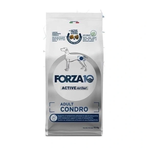 Alimento secco dietetico completo destinato a cani adulti di tutte le taglie e razze, avente lo scopo di supportare il metabolismo articolare in caso di osteoartrite. L’alimento risponde ad alcuni requisiti essenziali: – monoproteico, formulato con unica fonte alternativa di proteine animali ad alto valore biologico e biodisponibilità. – “Limited ingredients formula”: pochi ingredienti selezionati e di alta qualità. Mediante il sistema certificato AFS (Active, Fresh, System), garantisce l’integrazione di piante naturali ed estratti di frutta mediante l’incorporazione di una compressa a temperatura ambiente, che garantisce la permanenza dei benefici. Mediante l’AFS tablet sono stati introdotti: Condroprotettori, con estratto di condroitinsolfato; Artiglio del diavolo, a supporto del sistema muscolo-scheletrico, con effetto protettico gli stimoli dolorosi; Boswellia Serrata, per la gestione dell’infiammazione e modulazione del dolore. – L’apporto omega-3 ed EPA dall’olio di pesce viene bilanciato in modo ottimale.