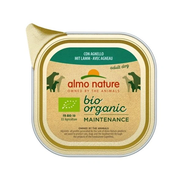 Composizione: BIO. 100% delle materie prime di origine agricola provenienti da agricoltura biologica-FR BIO 10. Agnello: Carni* e derivati* (agnello* min. 4%), cereali*, estratti di proteine vegetali*, sostanze minerali. Componenti analiticiUmidità 81%, Ceneri grezze 2.5%, Proteina grezza 10%, Fibre grezze 0.5%, Grassi grezzi 5%.