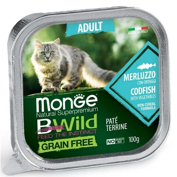 Alimento umido completo destinato a gatti adulti. L’alimento, costituito da bocconcini maltagliati in salsa, è caratterizzato da forme alternative di carboidrati non derivanti da cereali, in particolare fagiolini e carote. Il merluzzo è accompagnato dalla presenza di ortaggi (fagiolini e carote). Una significativa integrazione di XOS (xilo-oligosaccaridi) per il supporto del benessere intestinale, e Yucca schidigera, per il controllo dell’odore delle feci.