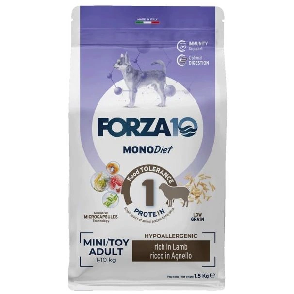 Alimento secco completo destinato a cani adulti di taglia piccola (1-10kg). La composizione bilanciata garantisce l’apporto di tutti i nutrienti necessari: il primo ingrediente è una fonte proteica animale di elevato valore biologico, integrato con prebiotici e polpa di barbabietola fondamentali per il benessere dell’apparato digerente. L’alimento ha come obiettivo il concetto dell’”High Energy”: mantenimento del peso corporeo ottimale, rispettando il fabbisogno energetico dei cani di taglia piccola. Non meno importante è la funzione “Detox action” grazie all’impiego di clinoptilolite, un minerale naturale avente la superficie porosa che assorbe ed elimina sostanze nocive e radicali liberi.