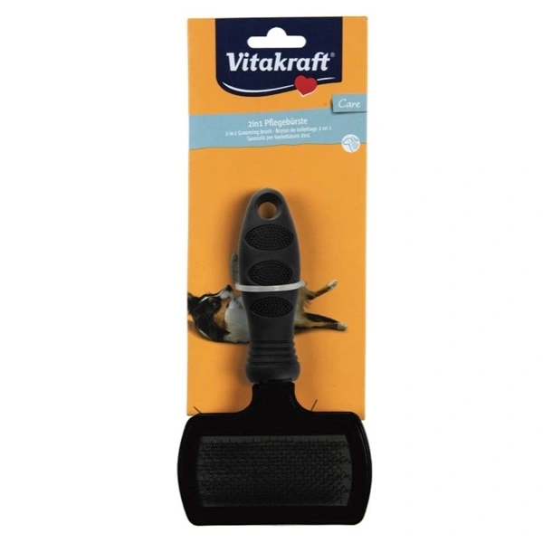 Cardatore per toelettatura doppio: per la cura del pelo, con impugnatura antiscivolo di gomma. Le setole di