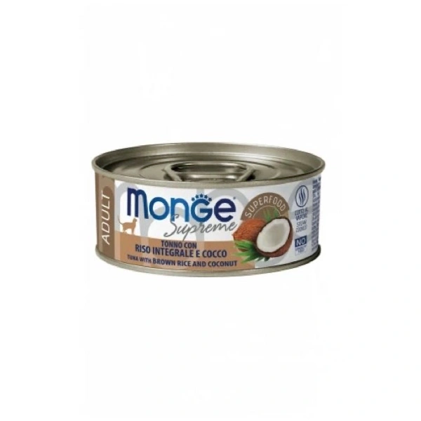 Alimento umido bilanciato complementare per gatti adulti (1+). La fonte proteica principale è rappresentata dal Tonno striato oceanico, alla quale sono stati aggiunti riso integrale, ricco di fibre per il corretto transito intestinale, e cocco, superfood ricco di minerali. Il tutto è accompagnato da una percentuale di FOS (frutto-oligosaccaridi), prebiotici essenziali per il benessere intestinale.