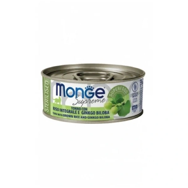 Alimento umido bilanciato complementare per gatti adulti sterilizzati. La fonte proteica principale è rappresentata dal Tonno striato oceanico, alla quale sono stati aggiunti il riso integrale, ricco di fibre vegetali per regolarizzare il transito intestinale, e il ginkgo biloba, superfood ricco di vitamine per supportarne la vitalità. Il tutto è accompagnato da una percentuale di FOS (frutto-oligosaccaridi), prebiotici essenziali per il benessere intestinale.