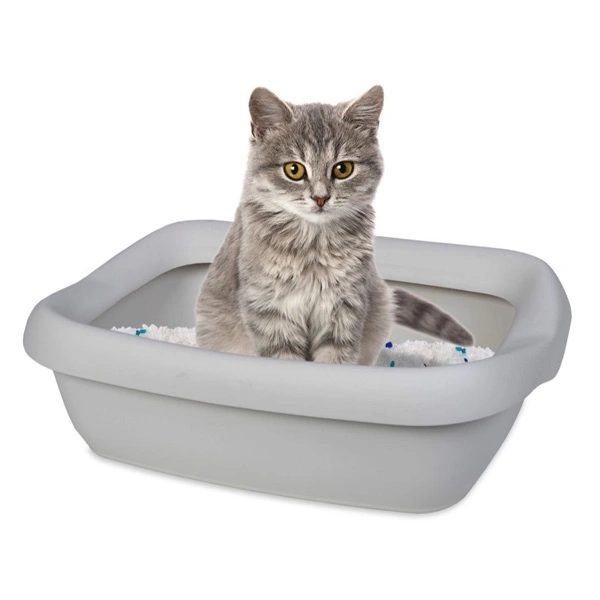 Cat Toilette grande aperta con cornice per ancorare la busta igienica. Facile da pulire.