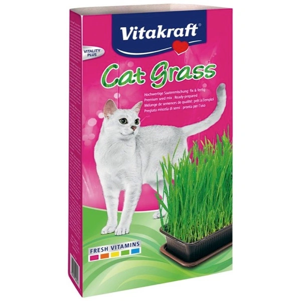 Con Vitakraft Cat Grass potete offrire al vostro gatto gustosa e sana erba gatta tutto l’anno. Una preziosa integrazione per il vostro micio per favorire l’espulsione dei boli di pelo nello stomaco, che si formano a causa della quantità notevole di pelo ingerito durante le operazioni quotidiane di pulizia.