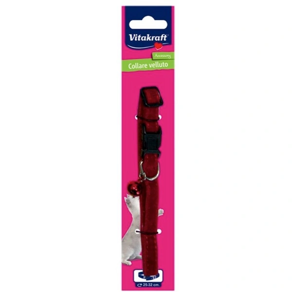 Collare per gatti in velluto con sganciamento facilitato per consentire al gatto di liberarsi del collare qualora rimanga agganciato in qualche appiglio. Con campanellini colorati in abbinamento al collare.