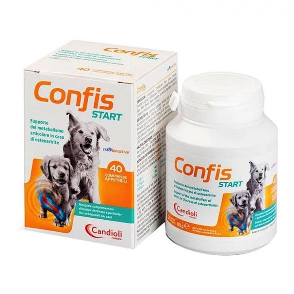 Candioli confis start è un mangime complementare dietetico specificamente formulato per il supporto del metabolismo articolare nei cani affetti da osteoartrite, la più comune artropatia nei mammiferi. Le compresse appetibili favoriscono la mobilità articolare e contribuiscono a ridurre i fastidi legati alla rigidità e al dolore articolare. Ideale per cani di tutte le taglie, è un valido aiuto per migliorare il benessere quotidiano e la qualità della vita del tuo amico a quattro zampe.