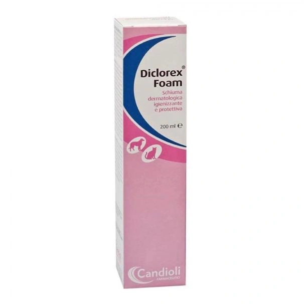 Diclorex foam schiuma dermatologica è una mousse lipofila specificamente formulata per supportare il trattamento delle affezioni cutanee di origine allergica, batterica, parassitaria o fungina negli animali da compagnia. Indicata anche in caso di dermatiti resistenti, agisce efficacemente come coadiuvante topico o in combinazione con altre terapie. Grazie alla sua azione igienizzante e protettiva, rimuove le impurità, favorisce la rigenerazione del film lipidico epidermico e allevia prurito e fastidi cutanei. Adatta sia per uso quotidiano sia per cure dermatologiche specifiche, è facilmente assorbibile e non lascia residui untuosi.