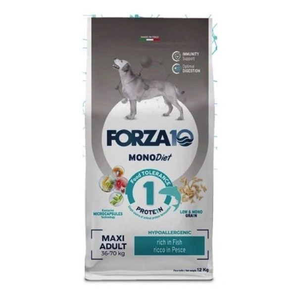 Alimento secco completo destinato a cani adulti di taglia media (11-35 kg). Il prodotto risponde a vari requisiti: ipoallergenico, monoproteico, fornisce una esclusiva fonte proteica; “Low&Mono Grain” cioè un alimento povero in cereali, presenti solamente sotto forma di riso ad alto valore biologico; ricco di Omega-3/6 e Maitake (Grifola frondosa) che supporta il sistema immunitario. Contiene Prebiotici (MOS e FOS)che favoriscono l’equilibrio della flora microbica intestinale e il corretto assorbimento dei nutrienti, ed estratti di Yucca schidigera che migliorano l’assorbimento dei nutrienti e riducono la quantità di ammoniaca oltre al cattivo odore delle feci. Tutto questo è fornito mediante una tecnica di “microincapsulazione”: permette la protezione delle caratteristiche nutritive da fattori ambientali (come luce, calore, umidità, ossidazione), e anche dagli stessi meccanismi digestivi dell’animali (come gli acidi gastrici) garantendo un assorbimento il più completo possibile.