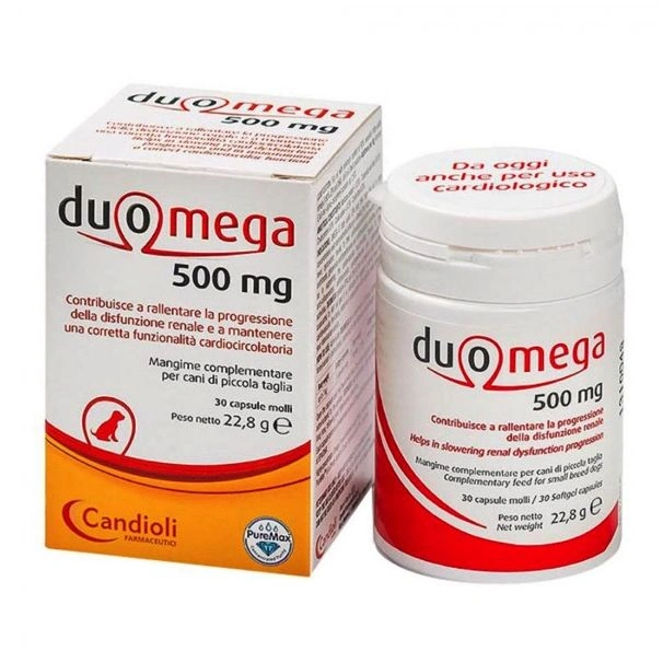 Candioli duomega 500mg è un mangime complementare specificamente formulato per i cani di piccola taglia, ideale per supportare la salute di cuore, cervello, pelle e articolazioni. Grazie alla sua elevata concentrazione di acidi grassi omega-3 epa e dha, derivati da olio di pesce puro, aiuta a contrastare infiammazioni, ridurre lo stress ossidativo e promuovere il benessere generale del cane, anche in caso di patologie croniche o degenerative. È indicato anche come coadiuvante in caso di disordini dermatologici, osteoarticolari o cardiovascolari.