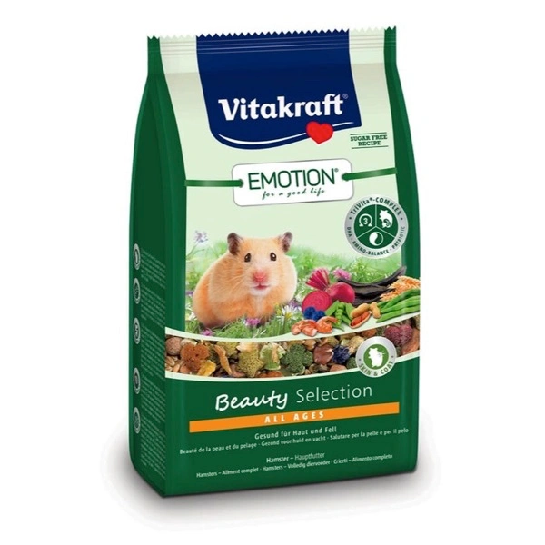 Preziosi cereali, sane verdure, croccante frutta a guscio: Emotion® Beauty Selection All Ages abbina un apporto nutritivo ottimale a un gusto delizioso e, grazie ai preziosi oli contenuti, contribuisce inoltre alla salute della pelle e alla lucentezza e bellezza del pelo dei criceti. La miscela equilibrata di questo alimento principale contiene ingredienti appositamente selezionati in base alle specifiche esigenze dei criceti e contiene, ad esempio, gustosi gamberetti che apportano importanti proteine a questi piccoli roditori. La composizione ricca di fibre grezze promuove inoltre il consumo necessario dei denti. Come tutti gli alimenti principali Emotion®, anche Emotion® Beauty Selection contiene naturalmente il TriVita®-Complex, l’innovativo complesso per garantire vitalità e salute ai criceti. Formulato da veterinari ed esperti di roditori! +TriVita®-Complex: grazie alla presenza di DHA nelle alghe marine, Emotion® contiene uno degli acidi grassi Omega-3 più essenziali e biologicamente attivi, importante per la funzionalità cardiaca, cerebrale e per il sistema immunitario. L’inulina prebiotica promuove la salute della flora intestinale e una digestione ottimale. Il rapporto equilibrato di amminoacidi essenziali garantisce inoltre un’elevata valenza biologica. Per una vita sana a 360°!