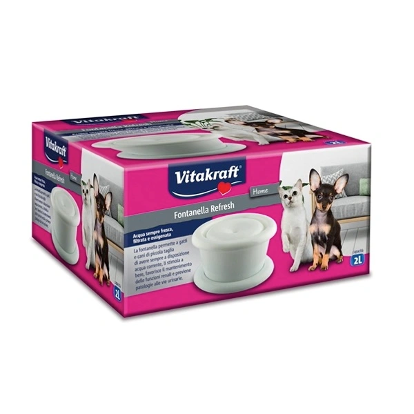 Acqua sempre fresca, filtrata e ossigenata. La fontanella permette a gatti e cani di piccola taglia