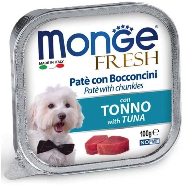 Alimento umido bilanciato completo destinato a cani adulti (1+) di tutte le razze e taglie, ideale per sostenerlo durante la vita quotidiana come pasto per cani di taglia piccola e come premio per quelli di taglia grande. Il patè ricco di bocconcini, è composto da carni fresche, basso tenore di zuccheri e senza grassi idrogenati. L’alimento è No cruelty test, privo di coloranti e conservanti aggiunti e Made in Italy.
