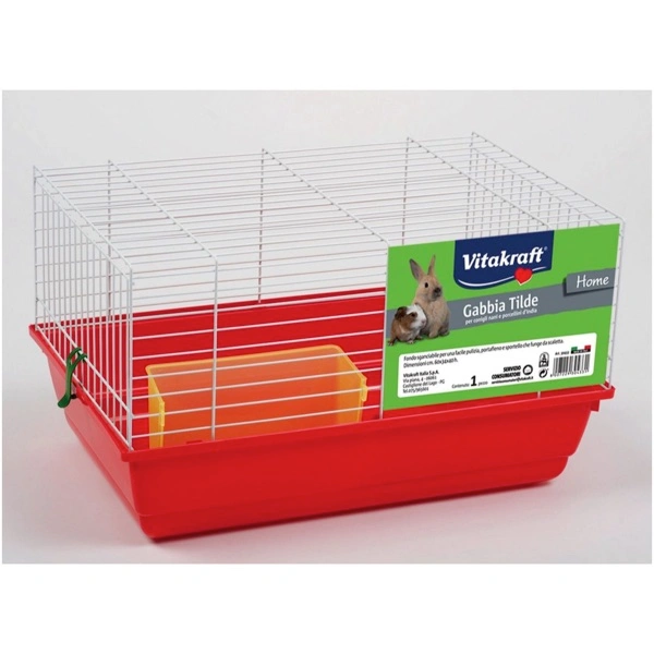 Gabbia per conigli nani e porcellini d’India con fondo sganciabile per una facile pulizia, portafieno e sportello che funge da scaletta.