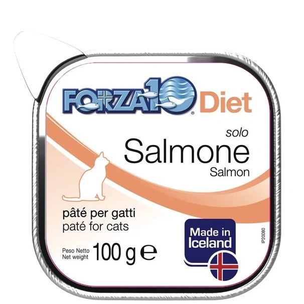 Alimento umido monoproteico complementare per gatti. Il salmone rappresenta l’unica fonte proteica. La conservazione è totalmente naturale.