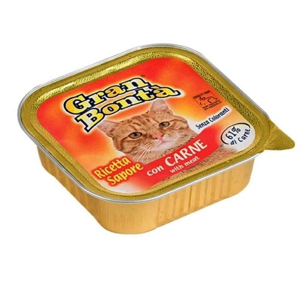 Alimento umido completo per gatti adulti, costituito da un patè cotto al vapore a base di carne, ricco in minerali e vitamina E. Made in Italy. No cruelty test. Privo di conservanti e coloranti artificiali aggiunti.