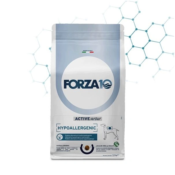 Alimento secco dietetico completo destinato a cani adulti di qualsiasi taglia e razza, avente lo scopo di ridurre le intolleranze a ingredienti e sostanze nutritive. L’alimento risponde ad alcuni requisiti essenziali: – monoproteico: unica fonte proteica alternativa derivante da insetti di alta qualità e sostenibilità. – hipoallergenic: con lo scopo di ridurre le intolleranze. – Addizionato con Aloe vera, come antiossidante, e Inulina ricca di prebiotici(FOS) per il sostegno del microbiota intestinale.