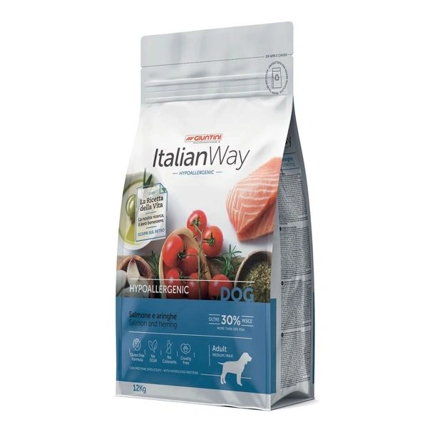 Alimento completo e bilanciato studiato per cani adulti di taglia media e grande con sensibilità o intolleranze alimentari. La sua formula ipoallergenica utilizza fonti proteiche selezionate come il salmone e l’aringa, che sono facilmente digeribili e ricche di nutrienti essenziali. Questo alimento aiuta a mantenere la pelle sana e il pelo lucido grazie agli acidi grassi omega naturalmente presenti nel pesce. Privo di cereali e realizzato con ingredienti di alta qualità interamente prodotti in Italia, rappresenta una scelta sicura e gustosa per garantire una dieta equilibrata anche ai cani più delicati.