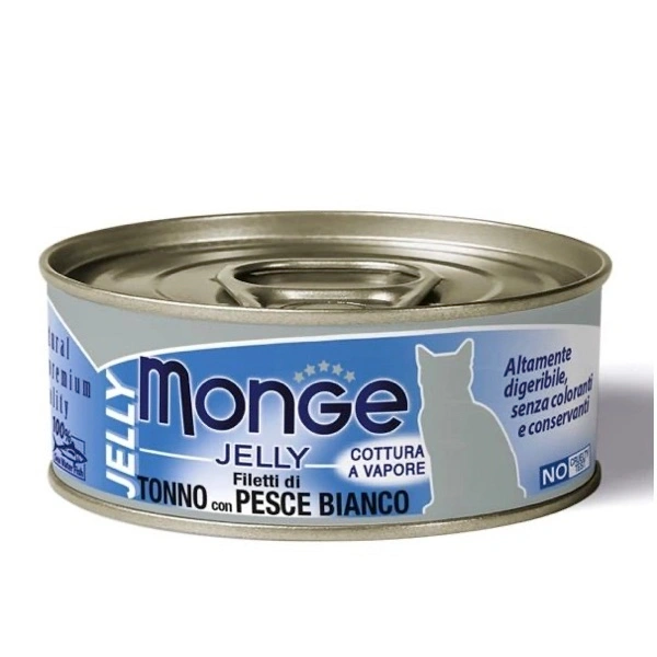 Alimento umido complementare per gatti adulti (1+), cotto al vapore e preparato con deliziosa e delicata gelatina. Arricchito con Tonno a pinne gialle di alta qualità e con pesce bianco, fonti di proteine ad elevata digeribilità e valore biologico. Senza coloranti e conservanti aggiunti. No cruelty test.
