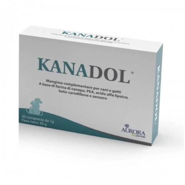 Composizione: Farina di canapa (15%), palmitoiletanolamide (PEA) (12%), acido alfa lipoico (10%), fosfato dicalcico, lieviti inattivati (Saccharomyces cerevisiae), proteine animali idrolizzate (fegato), magnesio stearato, maltodestrina. Componenti analitici: Proteina grezza 14,70%, Fibra grezza 24,70%, Grassi grezzi 2,50%, Ceneri grezze 10,90%, Umidità 3,80%. Modalità d’uso e razione giornaliera: Nel cane per i primi 3 giorni la porzione giornaliera può essere raddoppiata, per poi proseguire secondo necessità. Nel gatto non superare le porzioni consigliate in tabella. Porzione giornaliera cane: 0 – 7,5 kg : mezza compressa una volta la giorno, 7,5-15 kg: una compressa una volta al giorno, 15-22,5 kg: una compressa e mezza una volta al giorno, 22,5-30 kg: due compresse una volta al giorno, 30-40 kg: due compresse e mezza una volta al giorno, 40-60 kg: tre compresse una volta la giorno. Porzione giornaliera gatto : 2,5-5 kg: un quarto di compressa una volta al giorno, 5-10 kg: mezza compressa una volta al giorno.