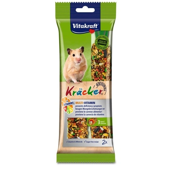 Con Vitakraft Kräcker® Original il vostro criceto deve conquistarsi il cibo. La deliziosa miscela di semi è cotta tre volte al forno sull’apposito legnetto per un passatempo specifico e un piacere prolungato tutto da sgranocchiare. Vitakraft Kräcker® l’originale tra i bastoncini da sgranocchiare!