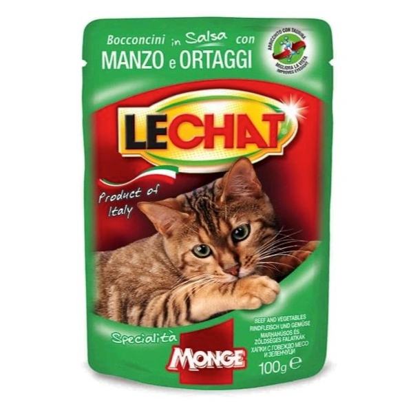 Alimento umido completo destinato a gatti adulti, formulato con bocconcini di manzo e ortaggi cotti al forno arricchito con vitamina A-D3-E, privi di conservanti e coloranti artificiali aggiunti, ottimi per garantire il corretto nutrimento quotidiano. Made in Italy. No cruelty test.