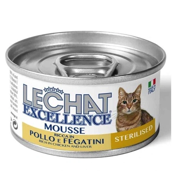 Alimento umido completo e bilanciato destinato a gatti adulti sterilizzati. Una soffice emulsione è stata formulata con pollo e fegatini, senza l’aggiunta di cereali (Grain free) e con un ridotto apporto di grassi per mantenere il corretto peso corporeo. Made in Italy. No cruelty test. Privo di conservanti artificiali aggiunti.
