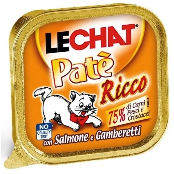 Alimento umido completo per gatti adulti di età superiore ai 12 mesi. È composto da delizioso patè cotto al vapore con salmone e gamberetti arricchito con vitamina A-D3-E, privi di conservanti e coloranti artificiali aggiunti, ottimi per garantire il corretto nutrimento quotidiano. Made in Italy. No cruelty test.