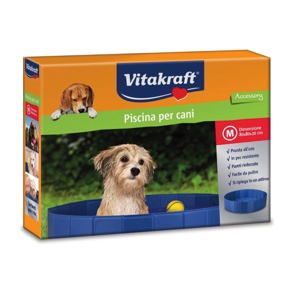 Piscina per cani in pvc con pareti rinforzate. L’accessorio ideale per un bagno divertente e rinfrescante durante le calde giornate estive e perfetto per lavare il cane in tutte le stagioni. Adatto per uso interno ed esterno, per un cane sano, pulito e rilassato.