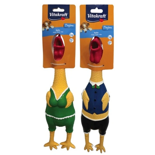 Pollo in lattice con vestito. Stringendo il gioco emette una simpatico grido.