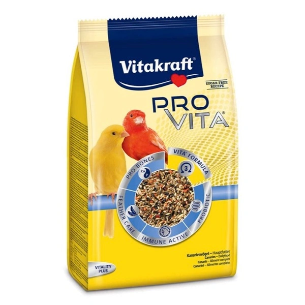 Pro Vita® è un alimento principale equilibrato per canarini, formulato da veterinari, con tutti i plus per una vita sana! La miscela funzionale, oltre a gustosi ingredienti, contiene l’esclusiva VITA® FORMULA, una combinazione specifica formulata dai nostri ornitologi composta da preziosi acidi grassi Omega-3 e amminoacidi essenziali in giuste proporzioni. Pro Vita® assicura un apporto ottimale di nutrienti, per un cuore sano, più energia e benessere.