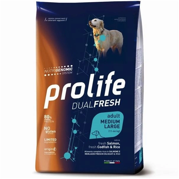 Prolife dog dual medium/large salmone/merluzzo/riso kg 12