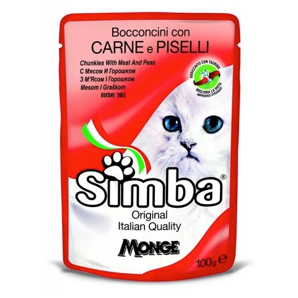 Alimento umido completo destinato a gatti adulti, composto da bocconcini deliziosi, cotti al forno, a base di carne e piselli ed integrati con complesso vitaminico A-D3-E. Made in Italy. No cruelty test. Privo di conservanti e coloranti artificiali aggiunti.