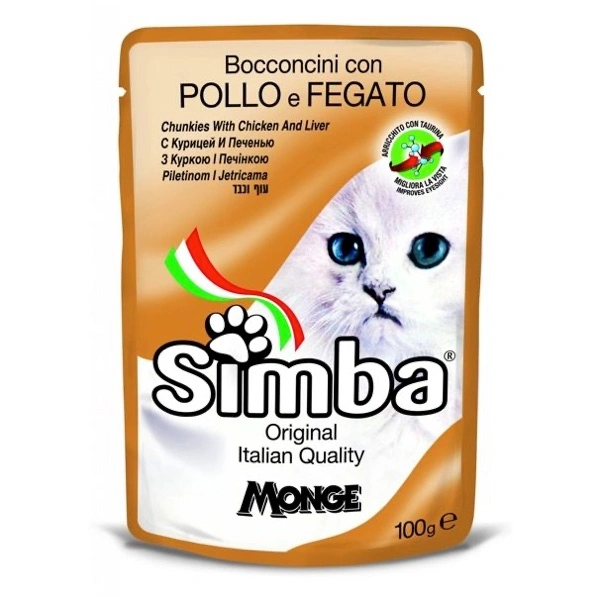 Alimento umido completo destinato a gatti adulti, composto da bocconcini deliziosi, cotti al forno, a base di pollo e fegato ed integrati con complesso vitaminico A-D3-E. Made in Italy. No cruelty test. Privo di conservanti e coloranti artificiali aggiunti.