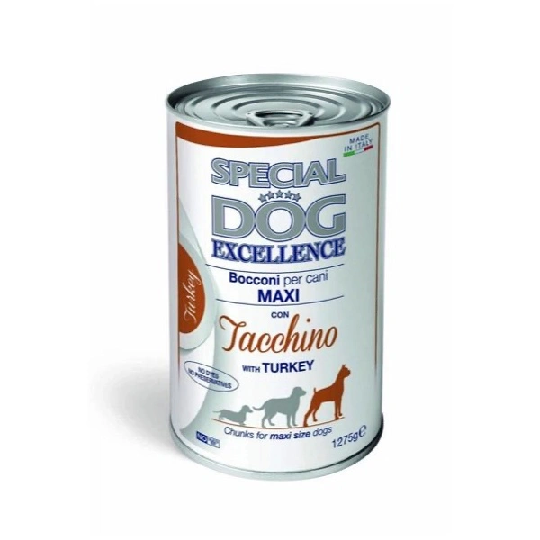 Alimento umido completo destinato a cani adulti di taglia maxi, di età compresa tra 1 e 8 anni. I bocconcini a base di tacchino cotti al forno, garantiscono una nutrizione bilanciata e idonea per il benessere quotidiano del tuo animale nel rispetto dei suoi fabbisogni. Made in Italy. No cruelty test. No conservanti e coloranti artificiali e zuccheri aggiunti.