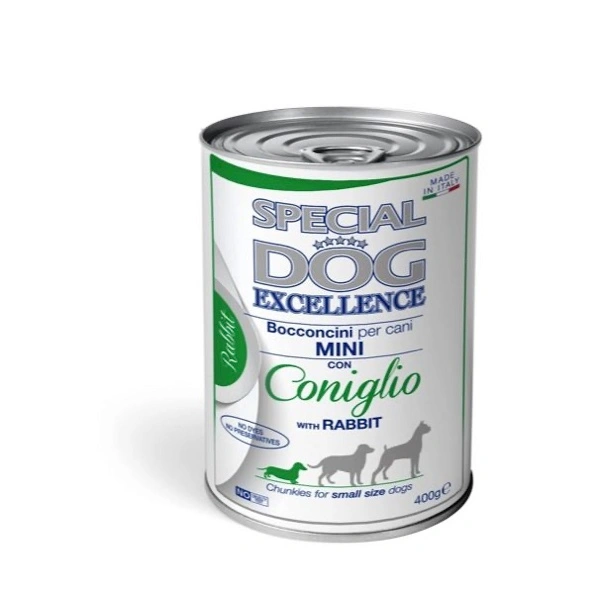 Alimento umido completo destinato a cani adulti di taglia mini, di età compresa tra 1 e 8 anni. I bocconcini a base di coniglio cotti al forno, garantiscono una nutrizione bilanciata e idonea per il benessere quotidiano del tuo animale nel rispetto dei suoi fabbisogni. Made in Italy. No cruelty test. No conservanti e coloranti artificiali e zuccheri aggiunti.