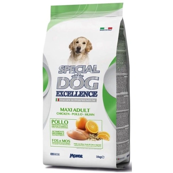 Alimento secco completo destinato a cani adulti di taglia maxi. Formulato con materie prime di pregio come pollo integrato con riso, i semi di lino, fonte di acidi grassi omega-3, valido supporto per il benessere della cute e del pelo, e gli agrumi, fonte di vitamina C, per il supporto del sistema immunitario. Made in Italy. No cruelty test. No conservanti e coloranti artificiali e zuccheri aggiunti.