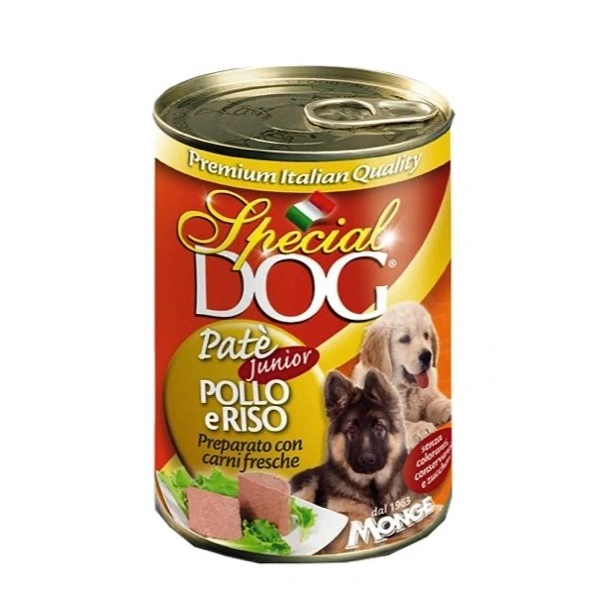 Alimento umido completo destinato a cani cuccioli di tutte le taglie. Il patè a base di pollo e riso cotto al vapore, garantisce una nutrizione bilanciata e idonea per i fabbisogni quotidiani, ulteriormente addizionata in vitamine A-D3-E. La formula è stata elaborata per cani che svolgono regolare attività fisica, combinando questo prodotto insieme ad un’alimentazione secca. Made in Italy. No cruelty test. No conservanti e coloranti artificiali e zuccheri aggiunti.