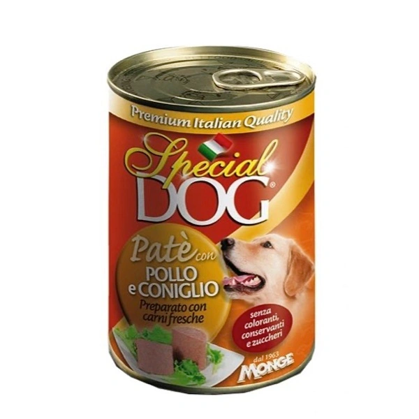 Alimento umido completo destinato a cani adulti di tutte le taglie. Il patè a base di pollo e coniglio cotto al vapore, garantisce una nutrizione bilanciata e idonea per i fabbisogni quotidiani, ulteriormente addizionata in vitamine A-D3-E. La formula è stata elaborata per cani che svolgono regolare attività fisica, combinando questo prodotto insieme ad un’alimentazione secca. Made in Italy. No cruelty test. No conservanti e coloranti artificiali e zuccheri aggiunti.