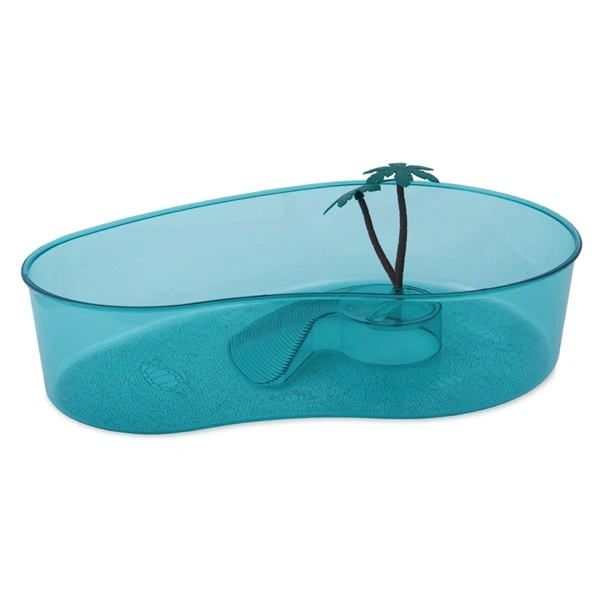 E’ un prodotto di facile gestione e pulizia. Ha una palma decorativa al centro posta sopra un isolotto. E’ ideale per piccole tartarughe d’acqua.