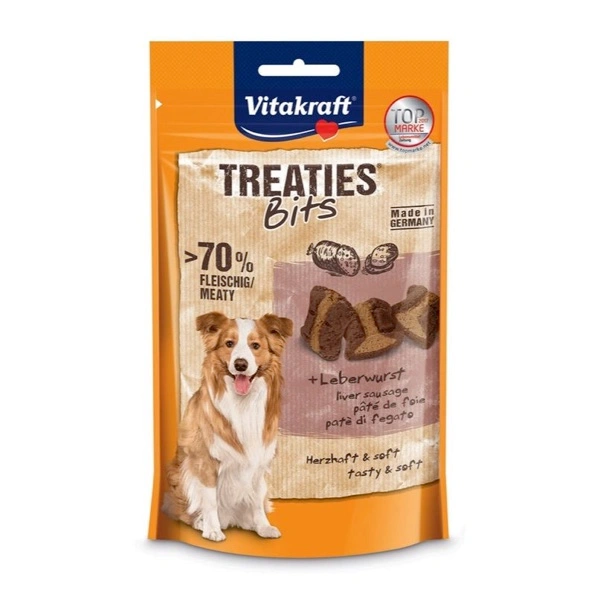 I morbidi Treaties Bits con gustoso paté di fegato vengono prodotti con un procedimento unico, con i migliori ingredienti e la ricetta non contiene zucchero. I bocconcini sono deliziosamente ripieni e cotti delicatamente al forno. I Treaties sono irresistibilmente gustosi e morbidi. Il vostro cane adorerà questi snack succulenti!.