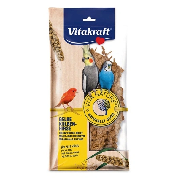 Gustose spighe di panico, raccolte ed essiccate con cura, un’autentica delizia. 100% naturale. VITA NATURE® Spighe di panico giallo è l’integrazione ideale al mangime ed un’attività specifica per la specie. Una prelibatezza per tutti gli uccelli.