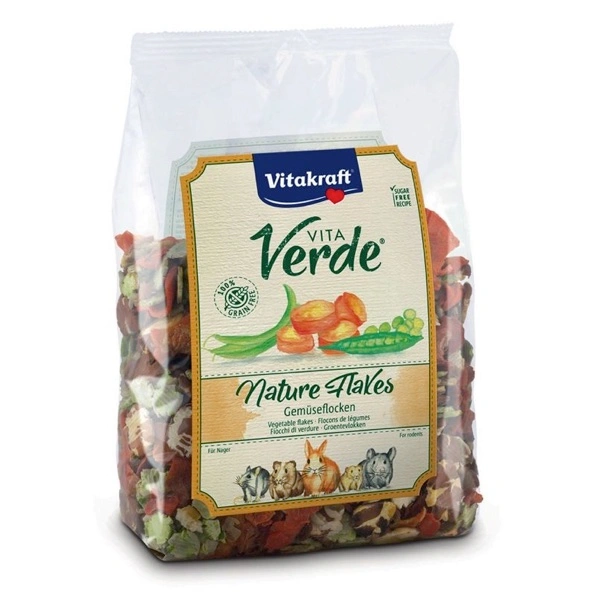 Come spuntino o mescolati all’alimento principale i fiocchi di verdure completamente naturali Vita Verde® Nature Flakes piacciono a tutti i roditori e assicurano un gusto delizioso e naturale. Questo gustoso snack con fiocchi di fagioli, piselli e carote è facilmente digeribile e contiene vitamine naturali e sostanze minerali.