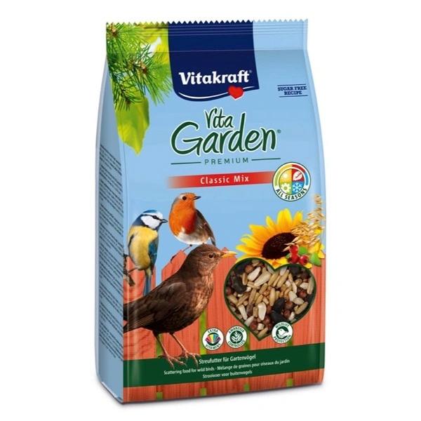 Sta diventando sempre più difficile per gli uccelli liberi reperire cibo sufficiente in natura. Un’alimentazione supplementare durante tutto l’anno può aiutare a mantenere le popolazioni di molte specie e contribuire in tal modo attivamente alla protezione degli uccelli. Offrite cibo e ammirate il mondo variopinto degli uccelli nel vostro giardino! Il cibo da distribuire Vita Garden® è un’aggiunta preziosa all’offerta di cibo naturale. Il Mix Classic contiene, tra l’altro, gustosi semi di rosa canina, avena nutriente, croccanti semi di girasole e fornisce a tutti gli uccelli da giardino nutrienti essenziali e vitamine importanti. Più varietà alla ricerca del cibo!